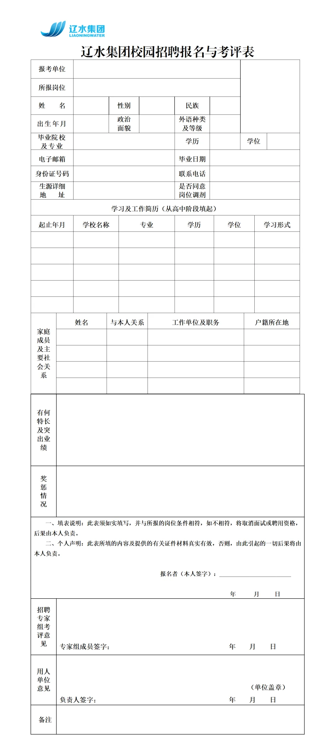 附件2:辽水集团校园招聘报名与考评表.docx(点击下载)