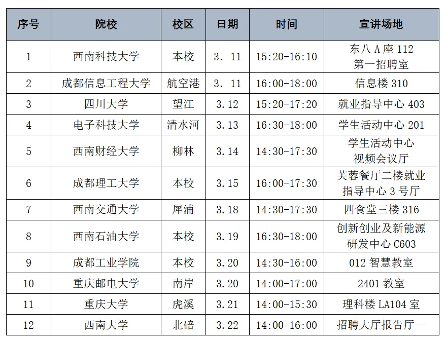 ②工作地点:成都、绵阳、西安、石家庄、深圳等;