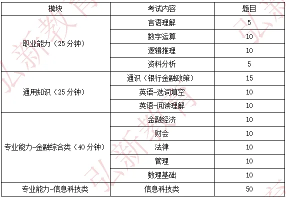 - 金融综合(专业能力):50题/40分钟(金融、经济、财会、法律、管理)