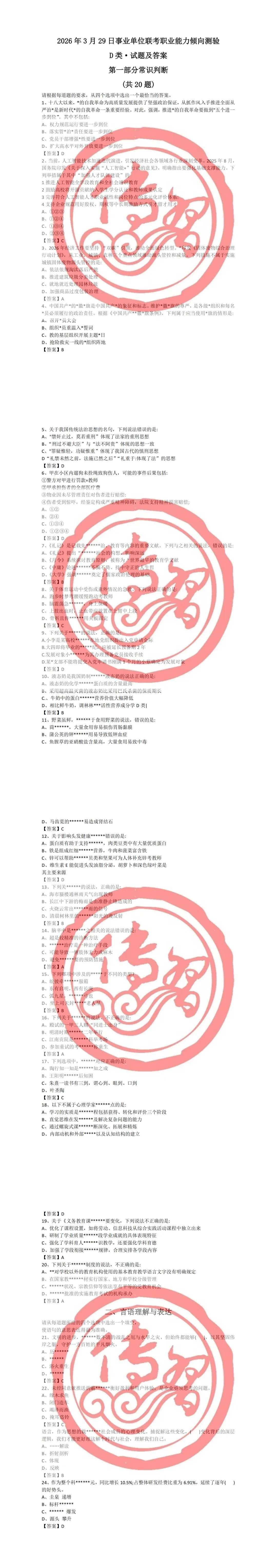 >【笔试真题】2026年3月29日全国事业单位联考职业能力倾向测验D类(考生回忆版)