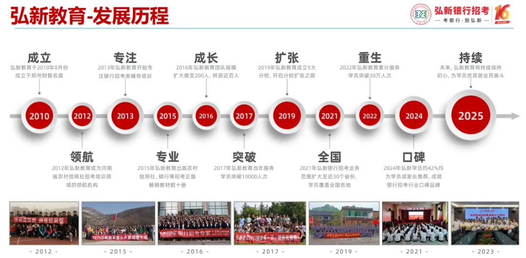 弘新教育成立于2010年8月,是一家总部位于河南郑州的全国性银行/农信社招考培训专业教育机构。