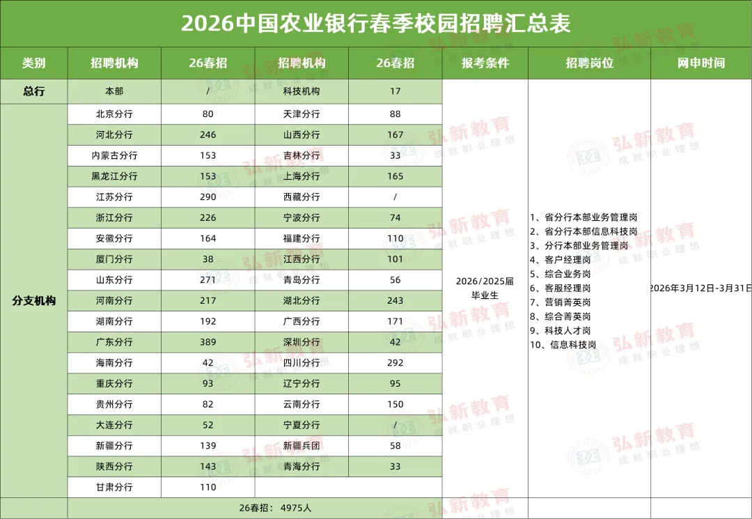 作为国内六大国有商业银行之一,农业银行凭借广泛的网点覆盖、稳健的经营发展以及完善的人才培育体系,始终是应届毕业生求职的优选目标。27秋季校园招聘即将拉开帷幕,本次秋招在岗位供给、薪酬福利与职业成长空间等方面,均为毕业生搭建了优质的发展平台。这份涵盖全流程的应聘攻略,助你精准把握机会,顺利通关!