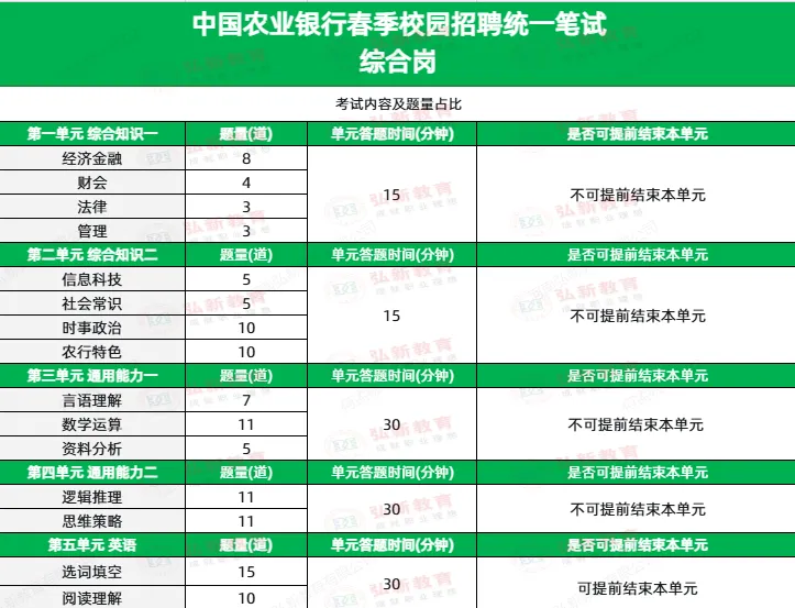 综合知识:占比约15%,包含农业银行特色常识(如行史、企业文化、最新发展战略)、经济学、金融学、会计学、计算机基础等内容。其中,经济学考点偏冷门但近年难度有所降低,金融学考点覆盖面广但难度较低,建议优先复习农业银行特色常识与金融学基础知识点。