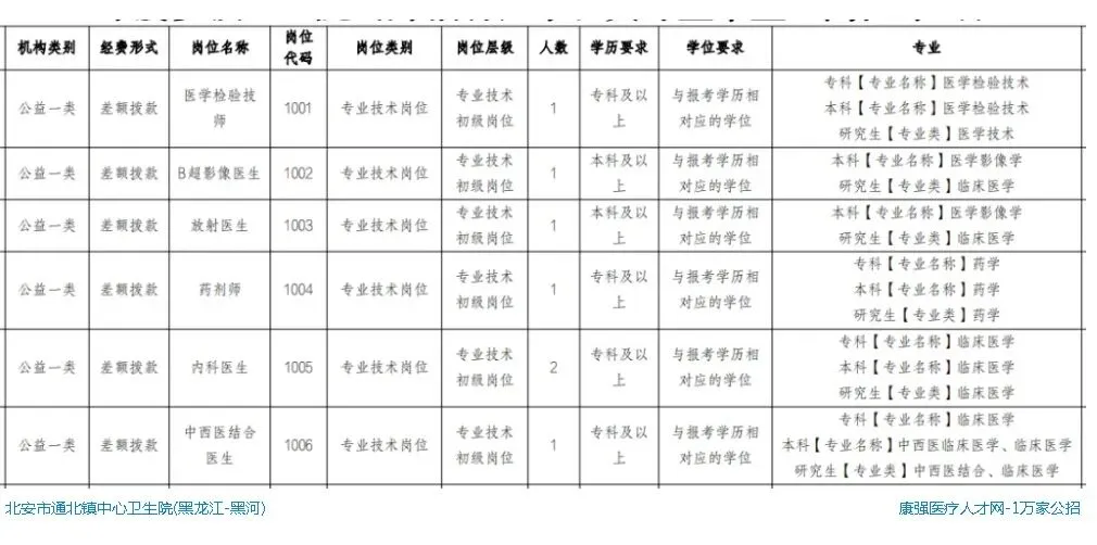 北安市2026年乡镇卫生院公开招聘医学相关专业毕业生公告