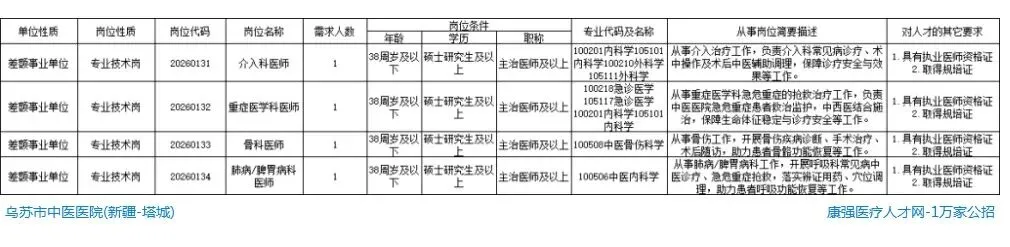 1:塔城地区事业单位2026年春季急需紧缺人才引进岗位表