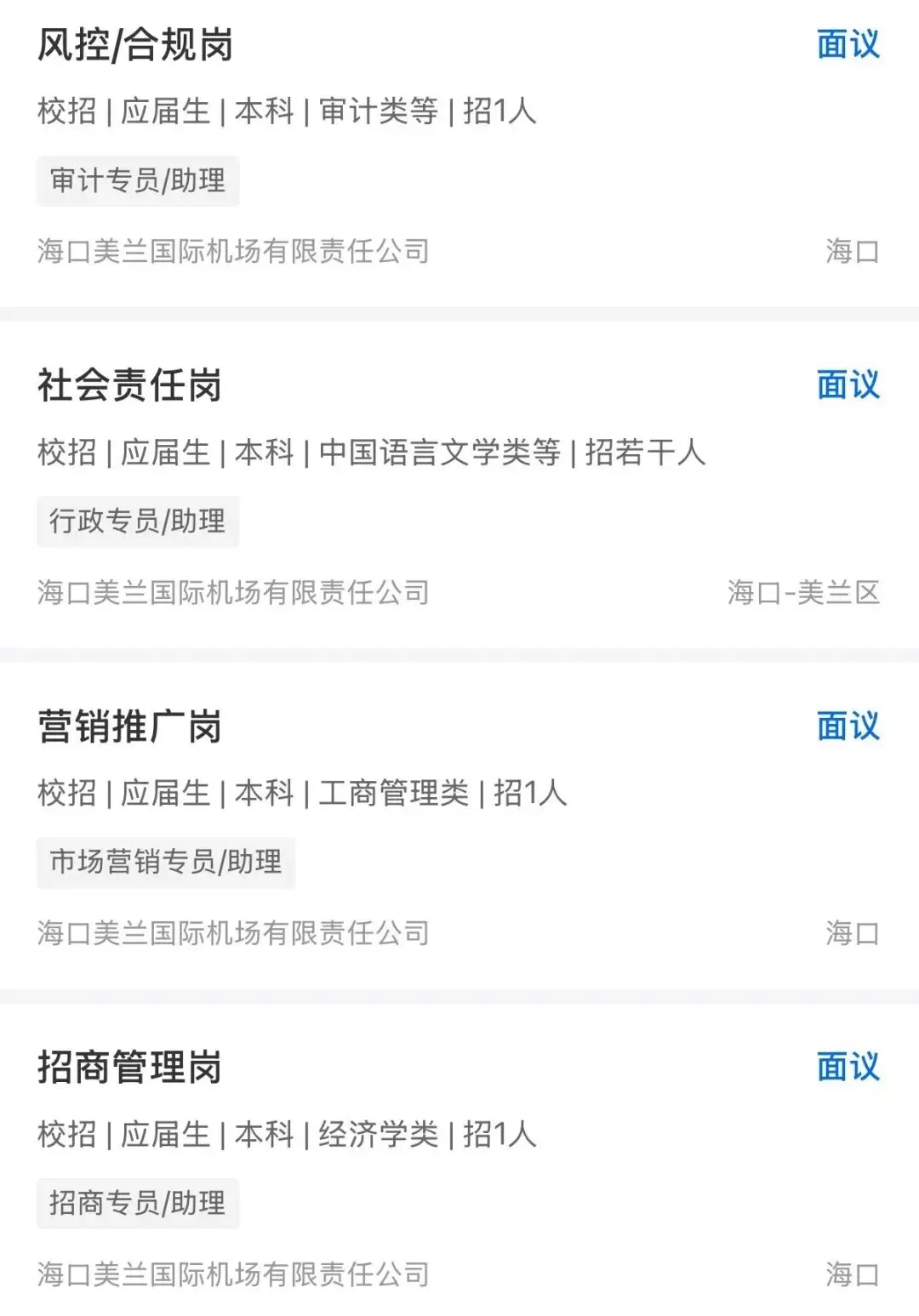 【国企招聘】上市国企!招应届生!海口美兰国际机场有限责任公司