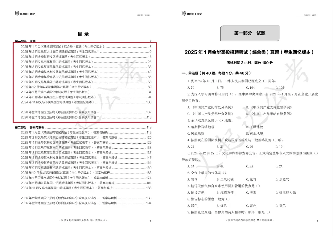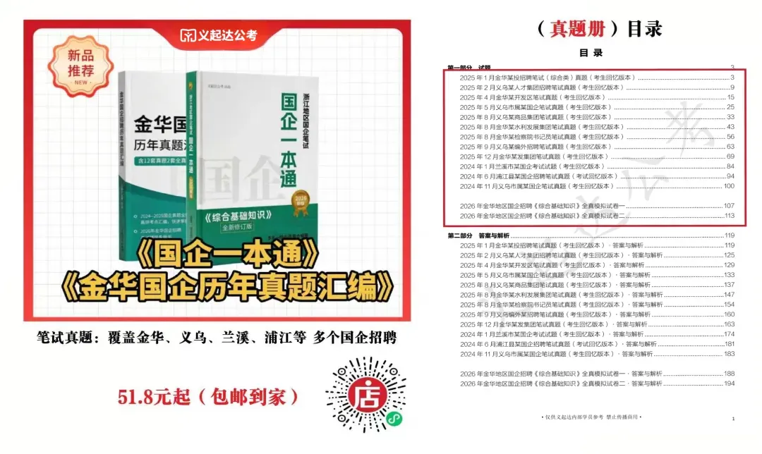 当前位置:首页>笔试招聘真题>【国企备考】2026年度国企《笔试一本通》及《真题册》含金华多个地区考题!!