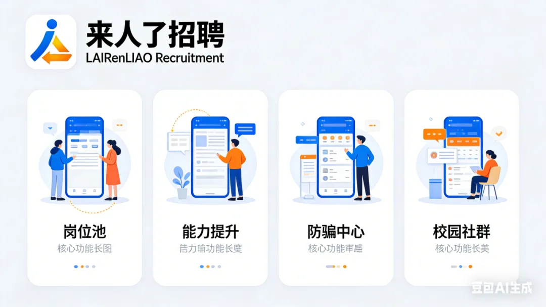 来人了招聘校园版聚焦应届生求职需求,打造一站式专属求职服务平台:平台搭建校园专属岗位池,聚合各类校招与实习岗位,提供全流程求职节点提醒,支持多维度筛选与本校专属岗位对接,依托 AI 实现高匹配度岗位推荐,并通过三重企业资质审核严防虚假招聘;同时打造应届生能力提升中心,以 AI 简历优化、分岗位面试模拟、免费求职知识库等服务,全方位补齐应届生求职能力短板。