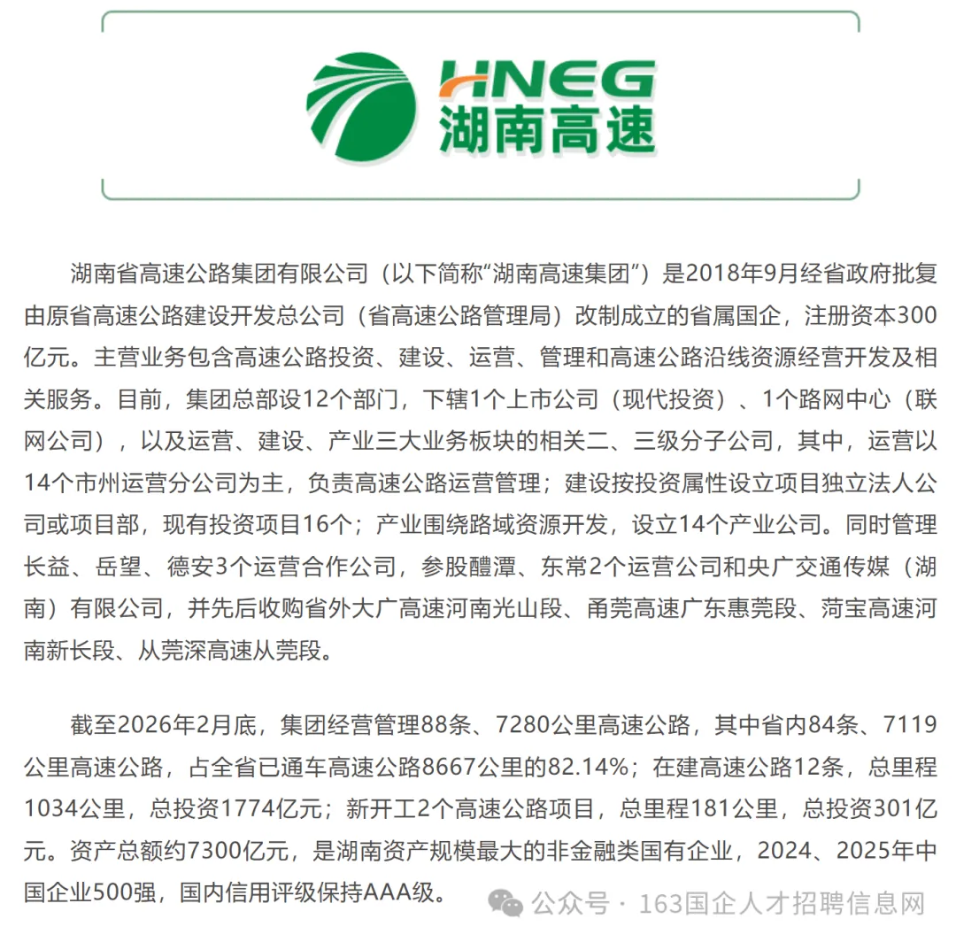 本次招聘人数共计100人,具体招聘单位、岗位、人数、专业要求等详见附件《湖南省高速公路集团有限公司2026年春季校园招聘岗位表》。