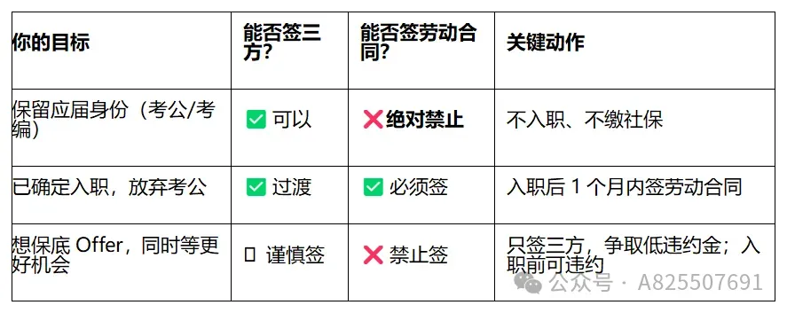 1.三方协议不是“护身符”:签三方后毁约可能需支付违约金(尤其协议中有明确条款),但不影响应届身份。应对策略:签约前争取取消或降低违约金(详见上一回答)。
