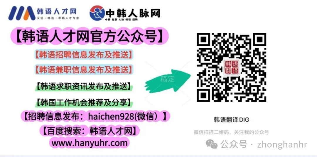 关注公众号,获取韩语&韩企招聘订阅;