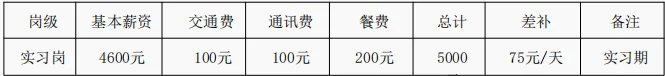 1、实习期结束后结合个人实习期间两次考核结果及工作能力定岗定薪,一般新入职 员工基本薪资 5000-7000,综合收入:8000-11000。