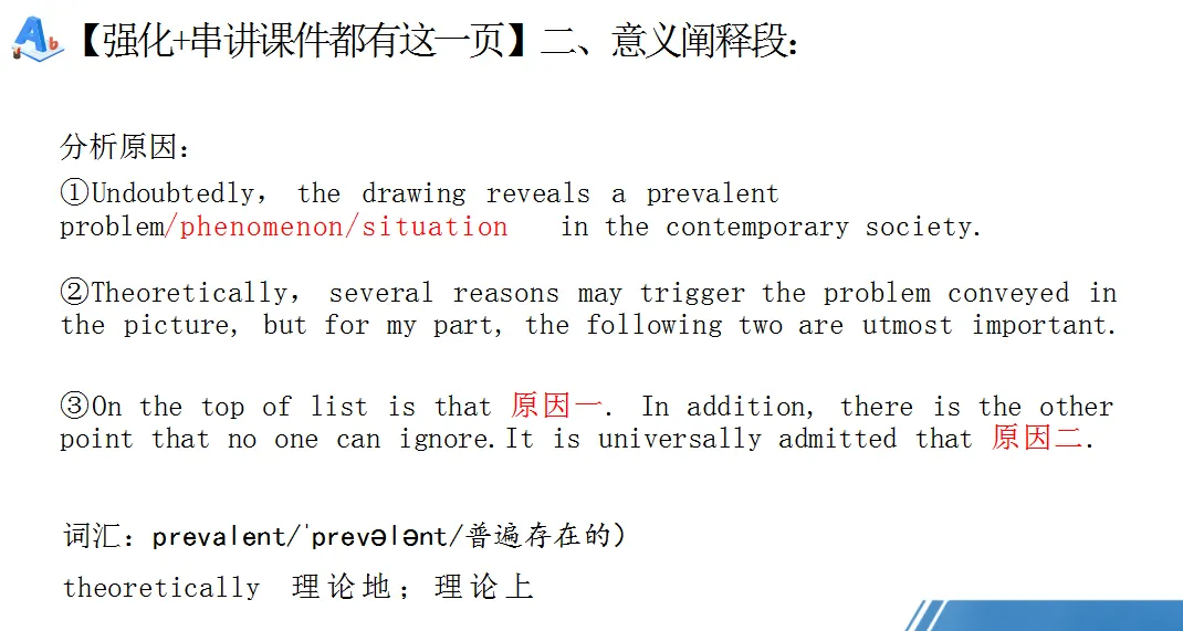 模考题与真题重合度很高,第一段图表阐释段98%内容课件里都有,第二段和第三段100%全覆盖。
