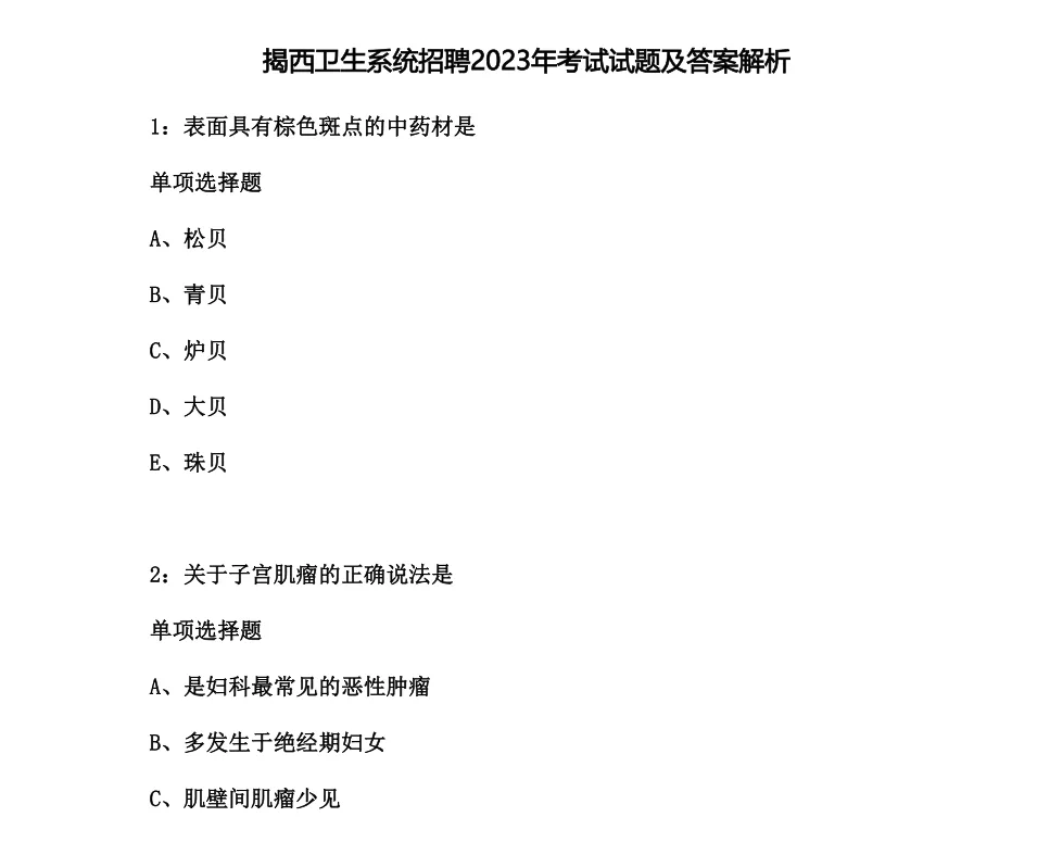1.面试时间:面试由县卫生健康局按有关规定组织实施,具体面试时间、地点等事项另行通知,请留意揭西县人民政府门户网站及相关短信通知等信息。