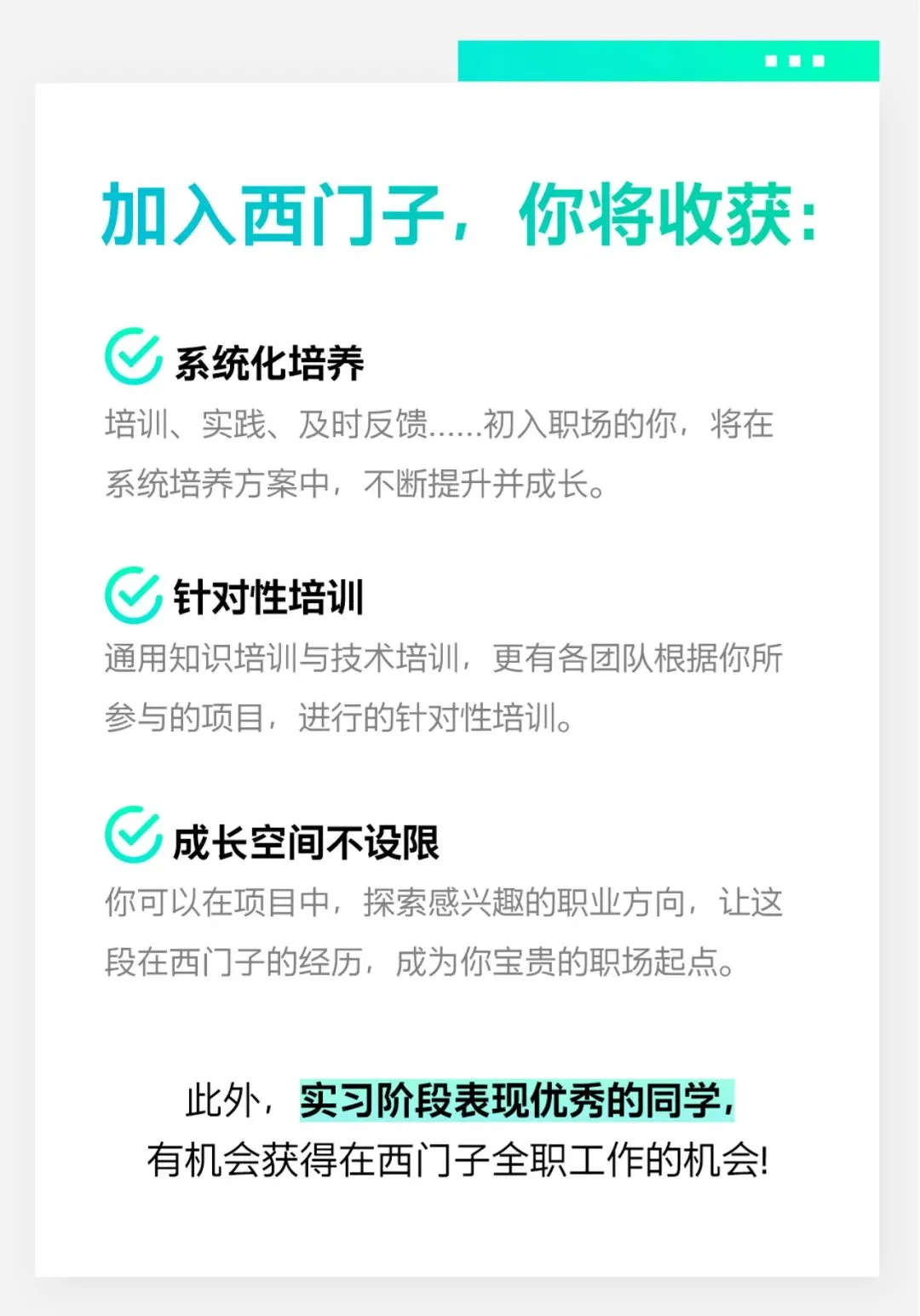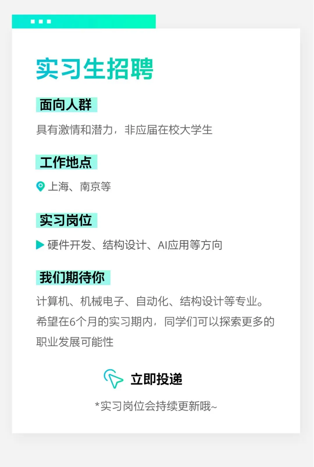 更多招聘、实习信息将及时发送至招聘群,