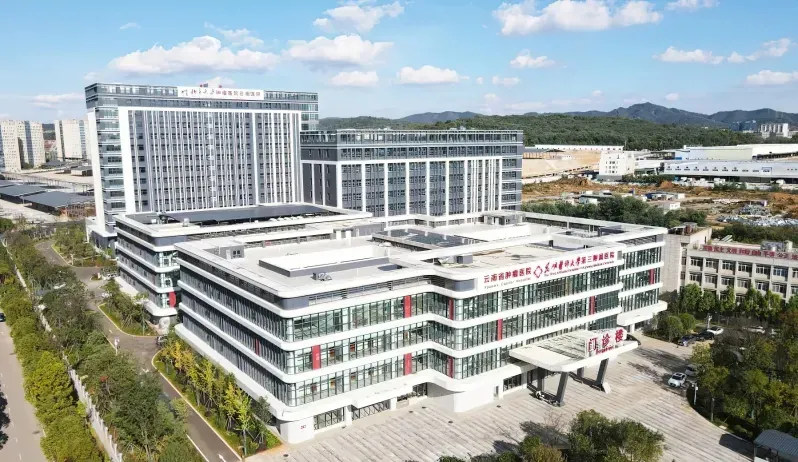1984年,为解决个旧矿工肺癌问题,云南省人民政府批准建立省肿瘤医院,作为昆明医学院附属医院。1992年医院正式开诊。2021年,云南省人民政府与北京大学肿瘤医院签署协议,依托云南省肿瘤医院,合作共建北京大学肿瘤医院云南医院,并于当年获批国家区域医疗中心试点项目。2024年6月,北京大学肿瘤医院云南医院(国家肿瘤区域医疗中心)在医院揭牌成立。北京大学肿瘤医院和云南省肿瘤医院以“全面托管,融合发展”的模式开展合作,实现品牌、管理和先进诊疗技术平移。医院依托主院区及癌症中心、自贸院区两个在建项目为基础,构建形成“一院两区”新发展格局,项目建成后总床位达2698张。北京大学肿瘤医院云南医院(云南省肿瘤医院、昆明医科大学第三附属医院)是云南省集医疗、教学、科研、预防于一体的三级甲等肿瘤专科医院。医院主院区占地面积79亩,总建筑面积24.6万平方米,设有31个临床科室,12个医技科室,编制床位1498张。