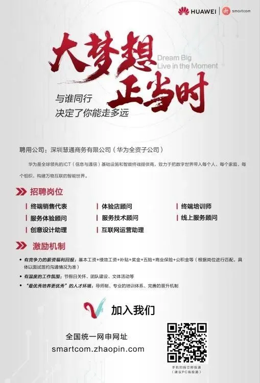 华为是全球领先的ICT(信息与通信)基础设施和智能终端提供商,致力于把数字世界带入每个人、每个家庭、每个组织,构建万物互联的智能世界。