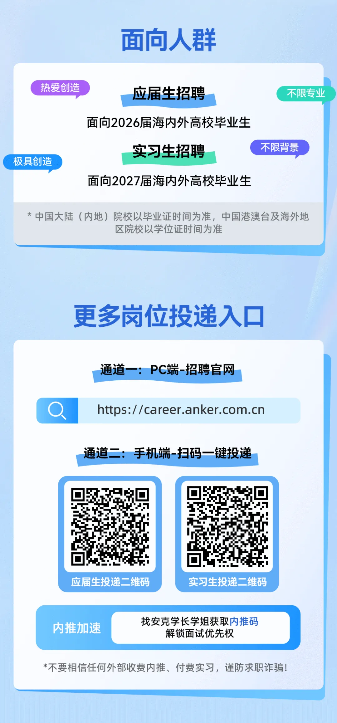 >【招聘信息】安克创新应届生/实习生多类岗位热招中!