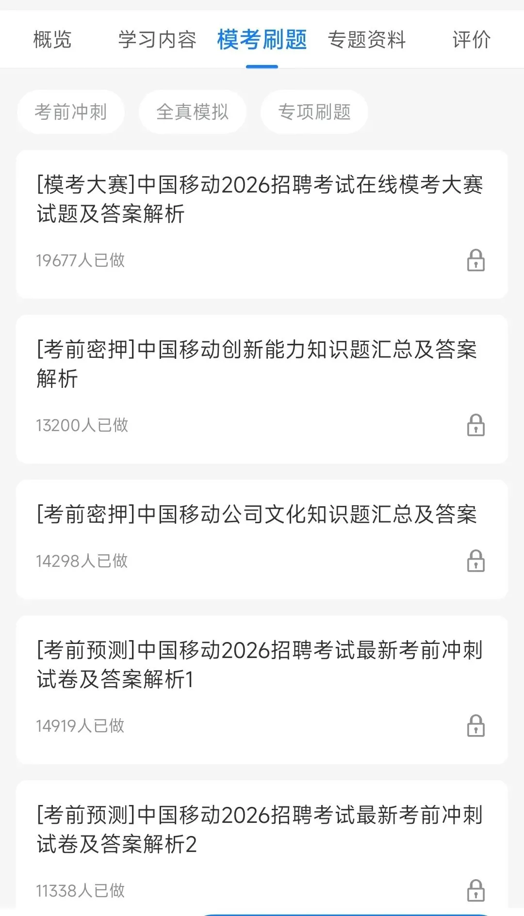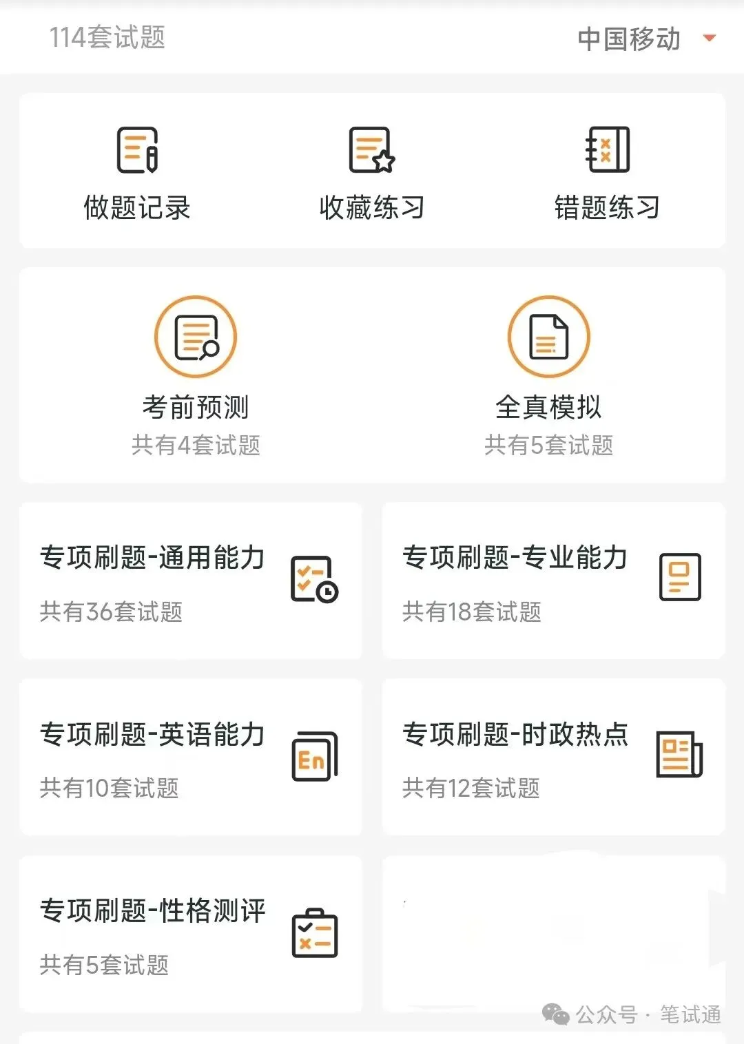 -完整真题套题:【笔试通】公众号内发消息回复“中国移动”获取-2026新版中国移动笔试备考学习包历年真题&复习讲义&机考模拟&APP刷题库中国移动16-25历年真题,复习资料,企业文化,创新题题库,全真模考,分模块专项刷题均有2026新版中国移动笔试备考学习包历年真题&复习讲义&机考模拟&APP刷题库移动16-25历年真题,复习资料,企业文化,创新题题库,全真模考,分模块专项刷题均有