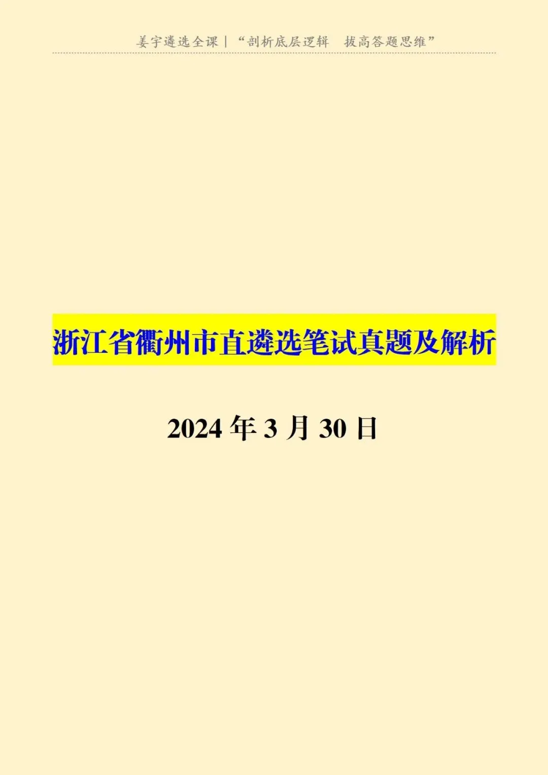 >浙江省|衢州市直遴选笔试真题及解析