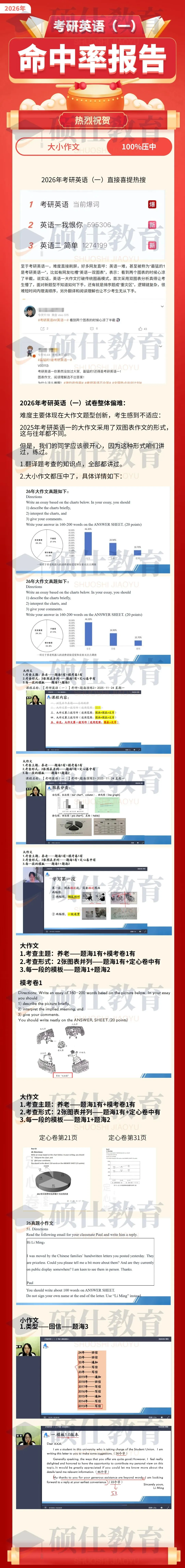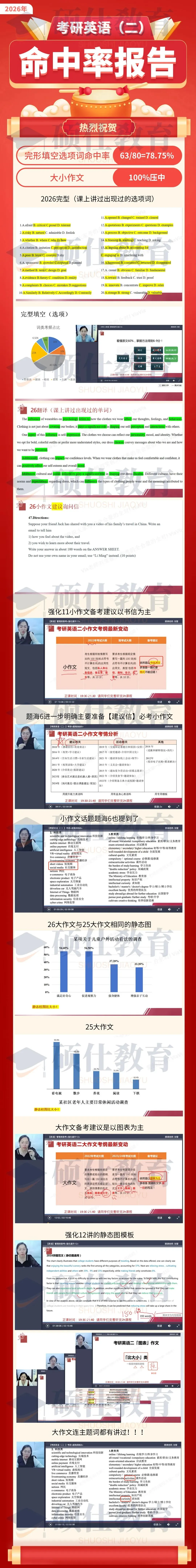 英语:英语一、二大小作文100%押中,完形核心词汇命中率78%,阅读考点高度匹配;