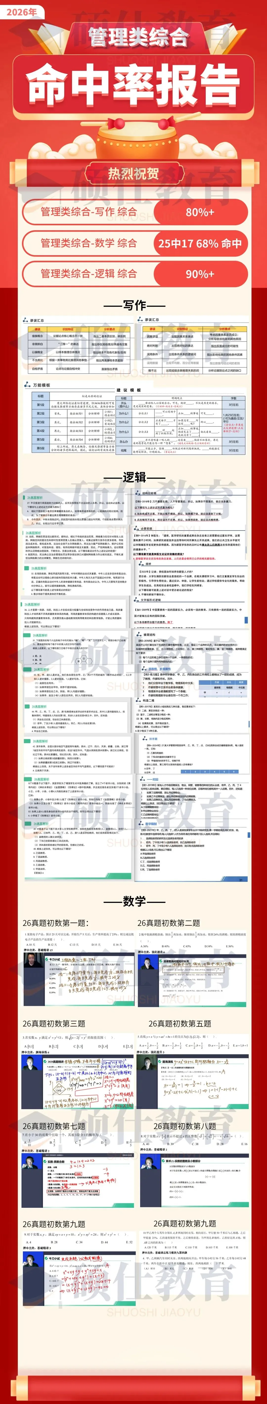 硕仕教育以绝对硬核的教研实力,再创行业押题巅峰 ——全科真题综合命中率突破 95%,多科目、多题型实现100% 精准命中,考场上原题重现、考点全中,学员喜报刷屏全网,高分战绩势不可挡!🔥 全科命中战绩・数据说话(95%+ 精准碾压)