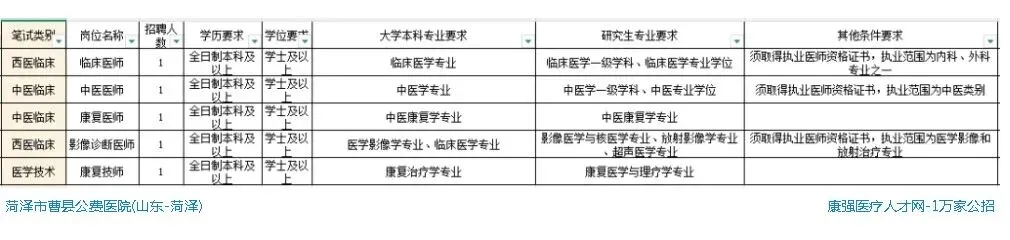 招聘岗位及具体要求,详见《2026年曹县公立医院面向医学类高校公开招聘初级岗位工作人员岗位计划表》(附件1)。