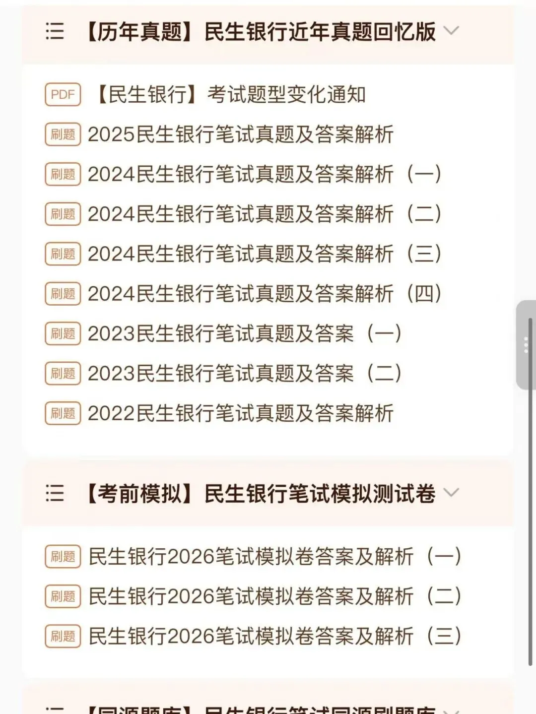 2026民生银行考试:民生银行历年真题2022l0-2025、民生银行企业文化、考前时政热点知识点、中国民生银行银行考前冲刺三套、刷题app、考前压题模拟