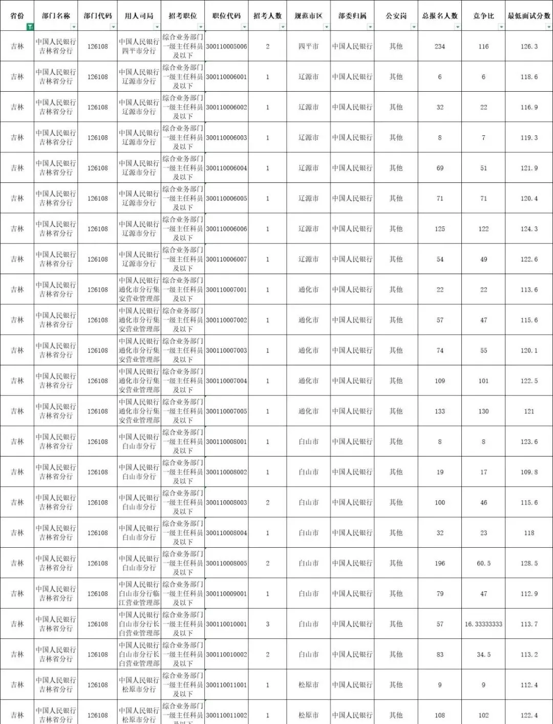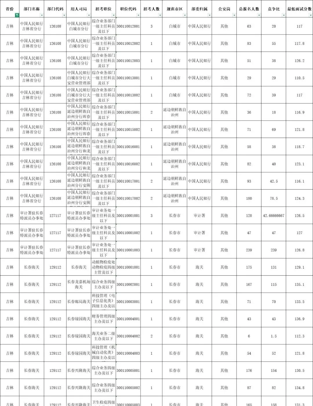 2026国考吉林各岗位最终报名人数及进面分数线